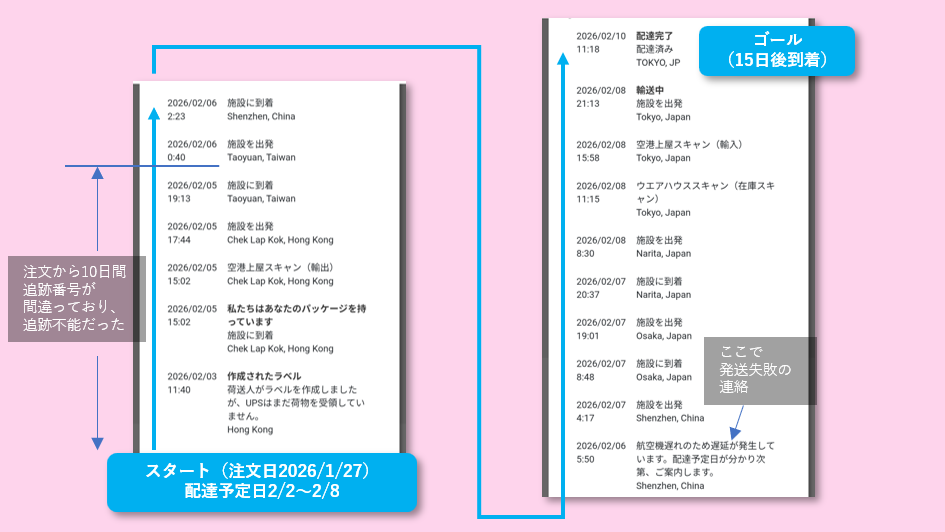 - 配送状況が気になり、高頻度で配送状況を見にいってしまい、仕事や勉強に影響が出る。